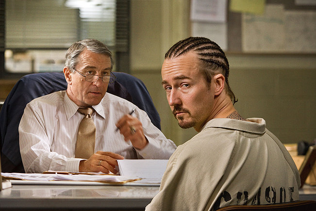 Да, донякъде образът на Нортън е deja vu. Коварен затворник, въоръжен с дар слово и актьорски талант, се опитва да прецака системата. Героят му тук е доразработка и еволюция на онзи от „Първичен страх“ – по-зрял, по-мъдър и стряскащо прав даже и в най-дръзките си обвинения.