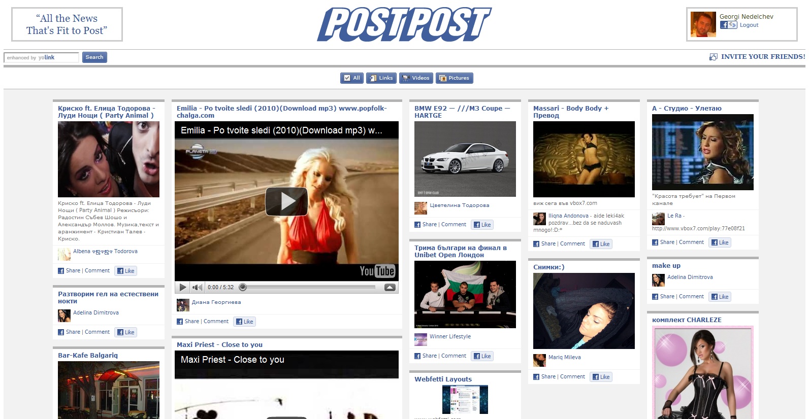 Какво ще представлява вестникът на бъдещето? Един от вариантите можеш да видиш в сайта PostPost.com. Тук всеки потребител на Facebook преглежда новините от профила и приятелите си под формата на ежедневник. Дизайнът нескрито копира един от най-популярните американски вестници – New York Post.