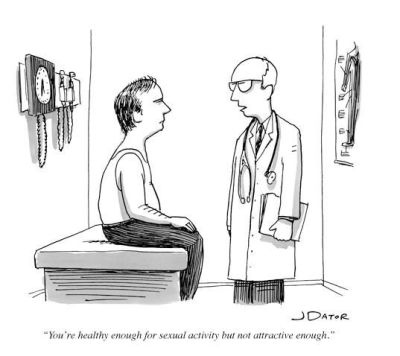 карикатура Карикатура на деня Публикувано от author на 17.09.201105.11.2014 „-Достатъчно здрав сте за сексуална активност, но недостатъчно привлекателен“. (The New Yorker) Сподели публикацията: Share on X(Отваря се в нов прозорец) X Share on Facebook(Отваря се в нов прозорец) Facebook Share on Pocket(Отваря се в нов прозорец) Pocket Email a link to a friend(Отваря се в нов прозорец) Имейл Харесвам Зареждане... Свързани
