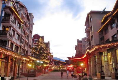 | Входът на хотела вечер. През зимата усещането за уют сигурно е още по-голямо. |
