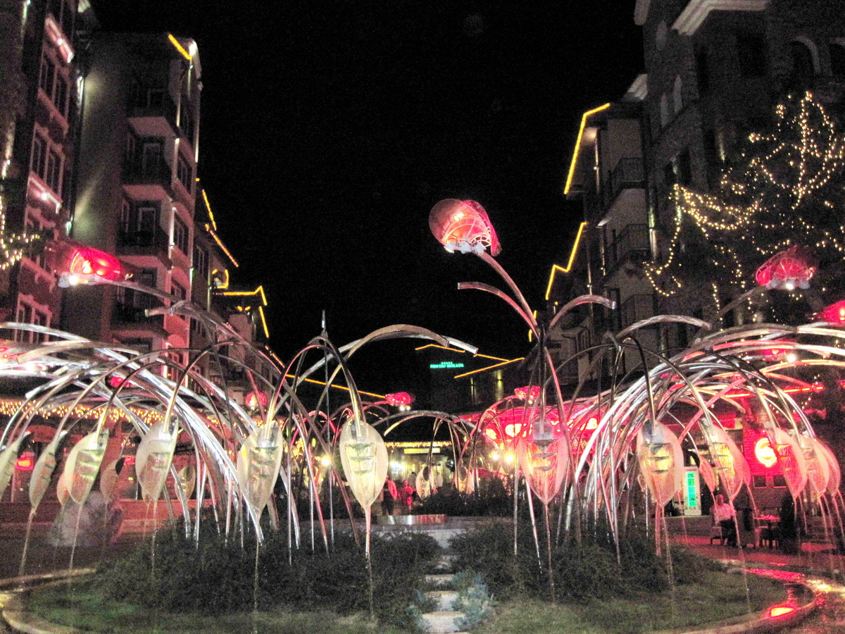 Страхотен фонтан! Щастлив съм, че познавам автора му. Казва се Иван Костов. Само съвпадение на имената. Ето неговите работи тук: http://ikostov.com/sculptures_01.html