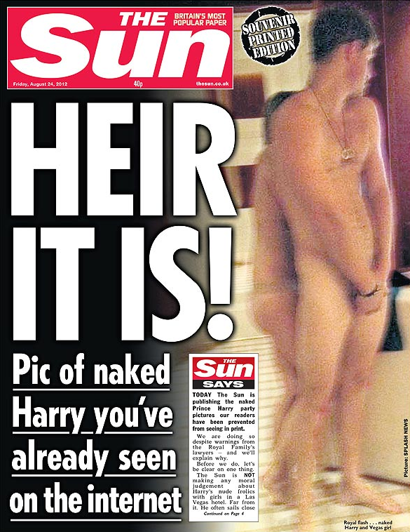 “Но защо да крием кадри, които милиони хора по цял свят видяха на компютрите си? Глупаво е да се правим, че не съществуват”, оправдаха се на следващата сутрин редакторите от “Сън”, докато колегите им от британската преса продължаваха да спазват монаршеската забрана. “А и това е не само частен случай. То е въпрос от национално значение и сигурност – как така ще има парти с наш престолонаследник и над 15-ина непознати момичета, на което всеки ще може да снима с телефона си и да прави каквото си иска?”, питаха още от многотиражния таблоид.