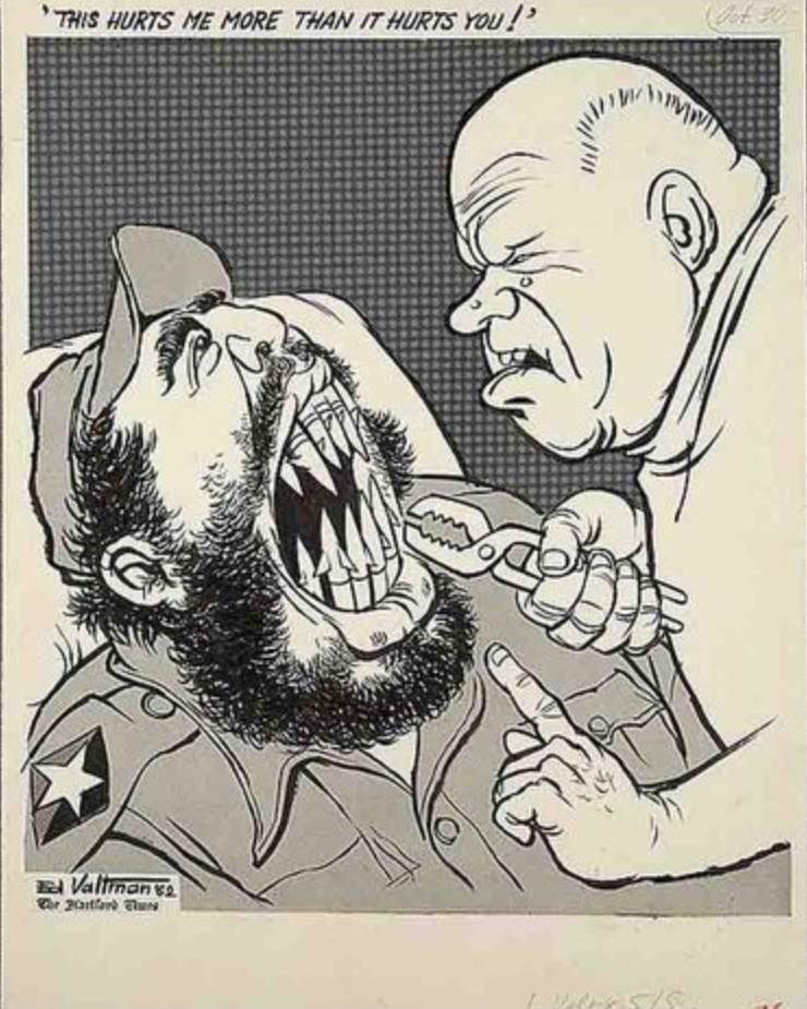 карикатура, политика Карикатура на деня Публикувано от author на 16.10.201205.11.2014 Хрушчов към Кастро: – Мен ме боли повече от теб! Карикатура от времето на 13-дневната Кубинска ракетна криза между СССР и САЩ, от която мина точно половин век. Сподели публикацията: Click to share on X(Отваря се в нов прозорец) X Споделяне във Facebook(Отваря се в нов прозорец) Facebook Натиснете, за да споделите в Pocket(Отваря се в нов прозорец) Pocket Натисни, за да изпратиш по и-мейл(Отваря се в нов прозорец) Имейл Харесвам Зареждане... Свързани