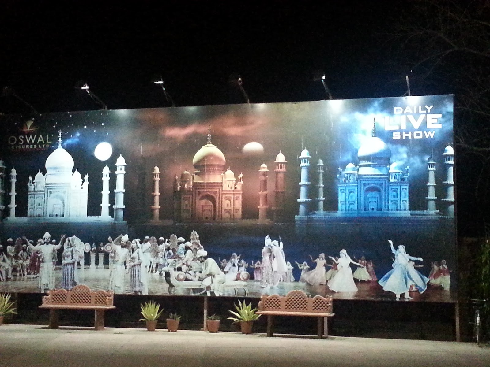 Навлизаме в града и още отдалеч виждаме Тадж Махал като приказно видение. Красотата на това чудо е толкова поразяваща, че буквално те прерязва през корема. На свечеряване спираме пред един от най-хубавите възможни хотели – “Радисън Блу”, обявил пуническа война на коварните дребни мушички наоколо. Нямаме много време да се насладим на лукса обаче, защото ни чака спектакъл в местен театър, посветен на Тадж Махал и историята му. Залата е шармантно украсена и добре климатизирана, танците и костюмите са зашеметяващи, преводът е със слушалки на 8 езика, а в танцьорките се влюбваш моментално и безотказно. Шоуто завършва в леко комичен пролетарски стил, акцентирайки върху мултиетническата същност на индийската нация.
