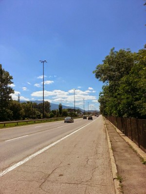 В София се движа не по Цариградско шосе, а по успоредния на него булевард „Цветан Лазаров“, който започва от големия Кауфланд в началото на „Дружба“. Така избягвам не само големия трафик, но и честата промяна в денивелацията. Като стигна до „Дружба 2“ минавам за по-напряко през квартала, излизам малко преди новия комплекс „Цариградски“. Пресичам бул. „Копенхаген“ и излизам на ул. „Обиколна“, която минава покрай една квартална „Билла“ и зад „Практикера“ на Цариградско. Така се озовавам до Лидъла на ул. „Димитър Пешев“ и кръстовището с магистралата. Пресичам го на пешеходната пътека, оттам 30-ина метра по тротоара, преди да се включа в движението по ул. „Павел Красов“ и „Самоковско шосе“.