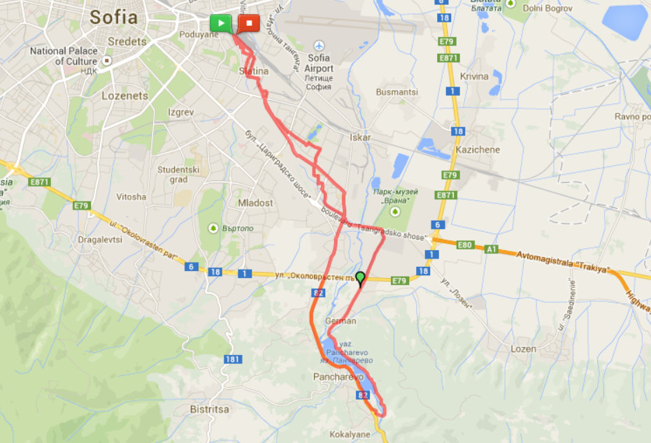 Но един от любимите ми по-дълги маршрути е този до Панчарево. От нас до езерото и обратно са точно 32 километра. Отначало ги взимах с две почивки (на ОMV след околовръстното и някъде край езерото), а напоследък и една ми е достатъчна.