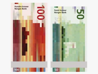 Ето как ще изглеждат от едната си страна новите банкноти на Норвегия. Държавната банка обявила конкурс между дизайнерски фирми с основна тема „Морето“. За гръбната страна били одобрени именно предложените от компанията Shohetta пейзажи, където пикселизираният образ е метафора за технологичните времена, в които живеем. За лицевата част на банкнотите все пак били предпочетени по-традиционни изображения, по дизайн на фирмата Metric System: