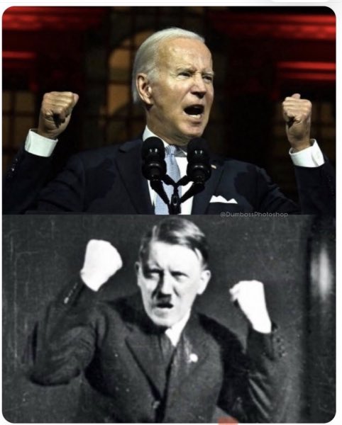 Погледнете внимателно постановката на цялата реч на Байдън от 1 септември, произнесена пред сградата „Индипендънс Хол“ (Залата на независимостта) във Филаделфия. Подобна символика, цветова гама и режисура досега са използвали само Сталин, Адолф Хитлер и Реджеп Ердоган. На видно място отзад са поставени и двама морски пехотинци в парадни униформи – елитни представители на армията, която по конституция е деполитизирана и няма място в подобно слово на омразата. В цялата си реч, през която жестикулираше досущ като фюрера на нацистка Германия, Байдън не спомена нито веднъж проблема с инфлацията, вълната от нарастваща престъпност в САЩ, проблемите с имигрантите от Мексико, нито даже големия конкурент за световна хегемония Китай. За сметка на това в словото съперникът му за Белия дом Доналд Тръмп беше споменат 3 пъти, 7 пъти – думата „екстремизъм“, привържениците на девиза „Да направим Америка отново велика (MAGA)“ – 13 пъти, а избирателите от Републиканската партия – 16 пъти.