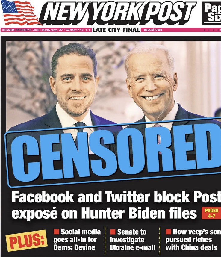 Веднага след излизането на статията в „Поуст“ всички линкове към нея в „Туитър“ започват да се изтриват, или да бъдат съпровождани с надпис, че „тази информация е несигурна“. Стига се дори до блокиране на лични съобщения между потребители – намеса, предназначена само за изключителни случаи, какъвто например е разпространение на детска порнография. Цялата операция е била самоинициатива на шепа хора от ръководството на „Туитър“, без дори да се стига до тогавашния собственик на платформата и неин създател Джак Дорси.