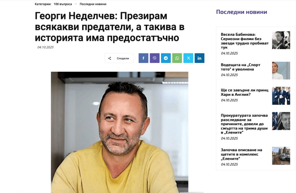 интервю, кино, любопитно, музика, политика, публицистика, статия, personal 100-те въпроса на вестник „Филтър“ Публикувано от author на 04.10.2025 Сподели публикацията: Click to share on X(Отваря се в нов прозорец) X Споделяне във Facebook(Отваря се в нов прозорец) Facebook Натиснете, за да споделите в Pocket(Отваря се в нов прозорец) Pocket Натисни, за да изпратиш по и-мейл(Отваря се в нов прозорец) Имейл Харесвам Зареждане... Свързани