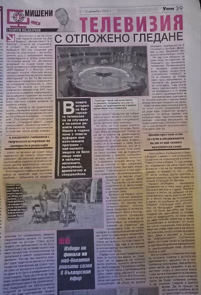 ГЕОРГИ НЕДЕЛЧЕВ/ в.“Уикенд“, 5 декември