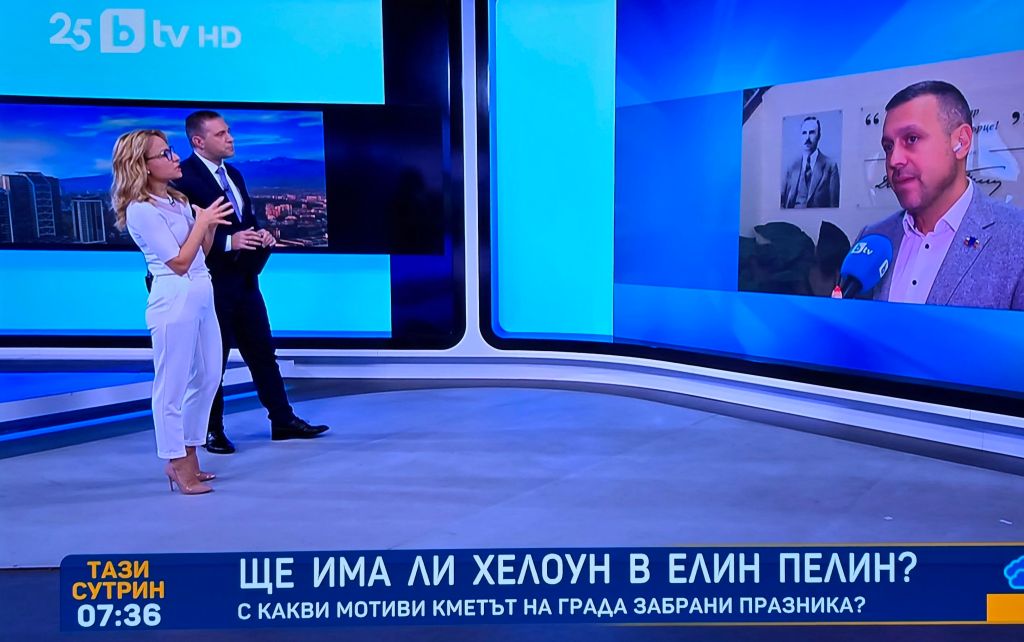 „Цънцарова стайл“: в сутрешния блок водещата громи в заядлив стил кмета-патриот на Елин Пелин, който си е позволил да отмени празнуването на Хелоуин в общинските институции. Правописната грешка си е на телевизията
